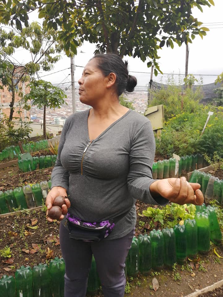 Aschircales es un proyecto familiar compuesto por la mamá Flor María Laverde, y sus cuatro hijos Ana Elvira Tenjo (Representante legal), Flor María Laverde (Veedora de la Asociación), Gloria Inés Tenjo (Fiscal de la Asociación), Dora Gladis Tenjo (Tesorera), José Alexander Tenjo (Secretario y articulador). Fuente: 3Colibrís.Desde 2004 , Aschircales ha contagiado su amor por la conservación de los alimentos tradicionales, trabajando activamente por la autonomía alimentaria de los bogotanos. Fuente: 3Colibrís.Reconocerse como agricultores urbanos ha sido todo un proceso para la familia Laverde Tenjo, que se ha tejido en la práctica, en la huerta, en el diálogo para pensarse nuevos horizontes de vida en comunidad y en autonomía alimentaria en la capital del país andino. Fuente: 3Colibrís.Puedes visita la preciosa huerta de Aschircales en la diagonal 49D 13F-37 sur, en el barrio Socorro Sur, tercer sector, localidad de Rafael Uribe Uribe, UPZ 54. Fotografía: 3Colibrís. Las huertas urbanas purifican el alma y el aire. Según un estudio presentado en 2018 por la Universidad Politécnica de Madrid contribuyen a mitigar el cambio climático al filtrar contaminantes atmosféricos. Según el programa de Agricultura Urbana, que se desarrolló en 2016, se registran 300 huertas familiares y comunitarias, a las que se les hace seguimiento a través de asistencias técnicas de los profesionales y técnicos del equipo del JBB. 55.000 bogotanos han recibido capacitación de este programa. Es fundamental contar con política pública favorable a la agricultura urbana en las ciudades para garantizar el derecho a la alimentación, un derecho que nos pertenece a todos. La seguridad alimentaria, autonomía alimentaría y soberanía alimentaria guardan una estrecha similitud en la medida que son tres aristas que contribuyen a garantizar el derecho a la alimentación, pero, no son lo mismo, la seguridad alimentaria se teje en los hogares o individuos, la autonomía alimentaria se construye en comunidad y la soberanía alimentaria se configura en política públicas, que pueden tener alcance veredal, de ciudad, departamental o nacional. La prueba y error han sido los principales maestros de Aschircales, a través de la experimentación los ensayos y la constante curiosidad, la Asociación a avanzado en el conocimiento y cuidado de los suelos, como base para la producción de alimentos con historia, sanos y localmente producidos. Actualmente, en la Asociación se dispone de frutales y hortalizas como esta provocativa granadilla que está esperando por dar cosecha para llegar a manos de un comensal interesado/a en alimentarse con sentido. Fuente: 3Colibrís.La curiosidad de la familia Laverde Tenjo ha permitido que Aschircales continue existiendo con el paso el tiempo a pesar de las dificultades y las limitaciones de recursos, económicos especialmente. Han participado en capacitaciones con el Jardín Botánico, ONG internacionales, formaciones en huertas caseras dentro y fuera de la localidad. El intercambio de saberes y la experiencia en terreno han sido dos factores vitales en la continuidad de la Asociación.Fuente: 3Colibrís.Según el Jardín Botánico de Bogotá, la agricultura urbana se trata de un modelo de producción de alimentos en contexto urbanos, que favorece la organización comunitaria para implementar sistemas agrícolas. Algunos sistemas agrícolas urbanos son: Agricultura vertical; Sistemas biointensivos; Sistemas de raíces flotantes; Producción en camas elevadas; Agricultura de reciclaje; Agricultura familiar; Producción y manejo de fertilizantes biológicos; Preparación de biocontroladores.El banco de semillas permanece en la huerta, como un museo vivo, sin embargo, quiénes visiten la Asociación, podrán encontrar semillas nativas para la venta o el intercambio, para multiplicar las huertas urbanas en la tierra de los rolos. Fuente: 3Colibrís.Aschircales ha recuprado un espacio que solía ser un chircal, un espacio dedicado a la explotación artesanal para la fabricación de ladrillos, que dejaron serios daños en las capas de los sueños, vegetación y biodiversidad de la localidad, cuenta Alex Tenjo. Fuente: 3Colibrís.Actualmente, Aschircales desarrolla jornadas pedagógicas a 40 niños y niñas de la localidad entre los 5 y 15 años para enseñarles jugando y aprendiendo cómo aprender a relacionarse con sus alimentos desde la perspectiva de la seguridad, la autonomía y la soberanía alimentaria. Según la Secretaria de Salud de Bogotá, para 2039 la mitad de la población bogotana tendrá desordenes alimentarios que pueden ser evitados a través de cambios en las dietas y la manera como se relacionan con sus alimentos. Fuente: 3Colibrís.