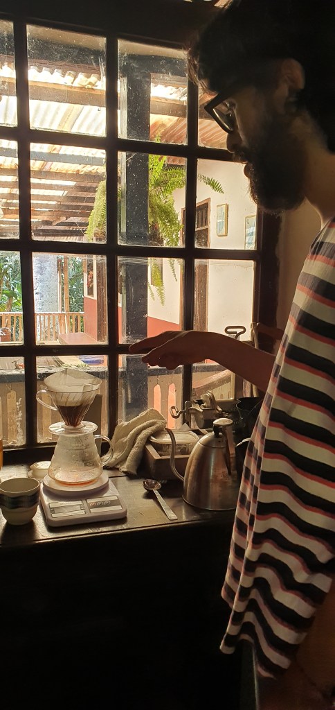 Carlos: Fue en parte el fallecimiento de mi abuelo pero viene también de la mano del proyecto que estaba investigando en Brasil teóricamente que tenía que ver con la relación entre Brasil y Colombia a partir de la historia del café. Nosotros nos conocimos en Sao Paulo estudiando la maestría en Artes Visuales, creo que en lo académico uno se somete mucho a la teoría pero hacía falta la práctica. El fallecimiento de mi abuelo dio sentido pero también había angustia existencial, porque su muerte significaba la muerte del agricultor en la familia; y aunque se sabía que iba a pasar no dejaba de ser muy triste. Probablemente, si no estuviésemos aquí la finca hubiese terminado por venderse, y perder esto es como perder esa raíz, entonces estar aquí nos permite afirmarla.