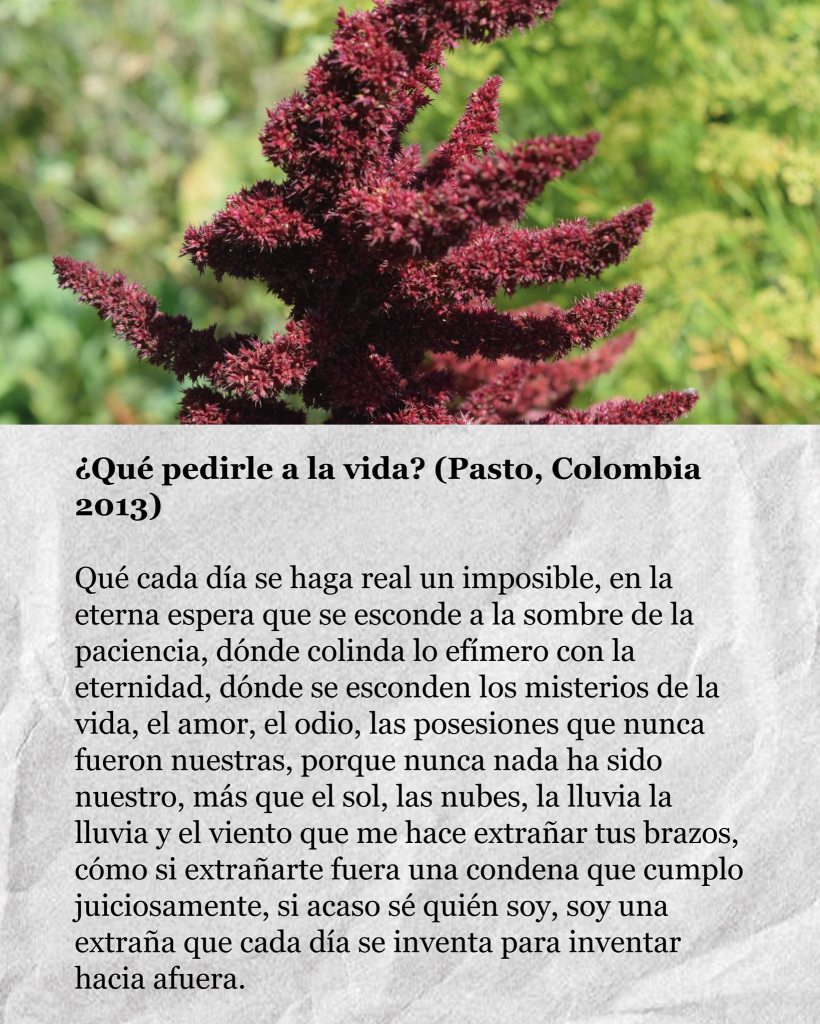 Es una recopilación de escritos y reflexiones viajeras. Retrato a lo cotidiano en un lenguaje cercano y profundo a la vez. Muy afín a la filosofía de 3Colibrís, cotidiano, arraigado. Creo que Andares es en últimas una probadita de como se vé y se siente el mundo desde mis ojos
